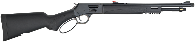 The Henry Big Boy X-Model is packed with a high-performance feature set and plenty of room to add even more. The durable synthetic furniture is equipped with integrated mounting points for a sling, a solid rubber recoil pad, and both Picatinny and M-Lok accessory slots to aid in mounting the tools you need for the task at hand. The carbine-length barrel is topped off with highly visible fiber optic sights, fore and after, and the muzzle end is threaded (5/824 thread pitch) to accept a suppressor or other muzzle device. A screw-on thread protector ensures your muzzle threads stay in top shape. Keeping true to our roots the Henry Big Boy X Model utilizes a 7-round removable tube magazine for convenient unloading, and the addition of a side loading gate allows that magazine to be kept topped off without needing to remove the tube or suppressor. Whether its geared up to be your bedside protector, truck gun, deer rifle, or Saturday range day show-off piece, the Big Boy X Model is one rifle capable of many different roles.
