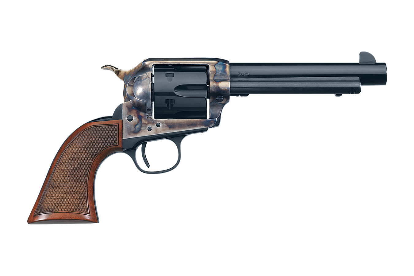 Manufacturer: Uberti Model: Short Stroke SASS Pro Caliber: 45 Colt Barrel Length: 5.5″ Twist Rate: 1:16 Overall Length: 11″ Finish: Blued Case-Hardened Grips: Checkered Walnut Sights: EasyView Capacity: 6-Shot